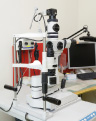 モニター付きの顕微鏡で瞳を拡大して診察する器械です。